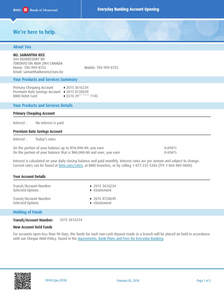 Bmo Account Application Samantha Rice Debit Card Financial Transaction